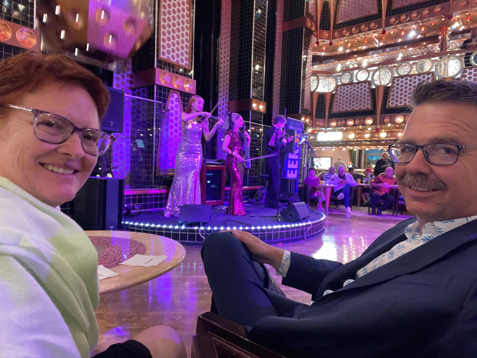 After dinner we went to the adult comedy show. Two comedians — the first guy from New Zealand was pretty good. We walked out about 5 minutes after the second guy started: not very funny.