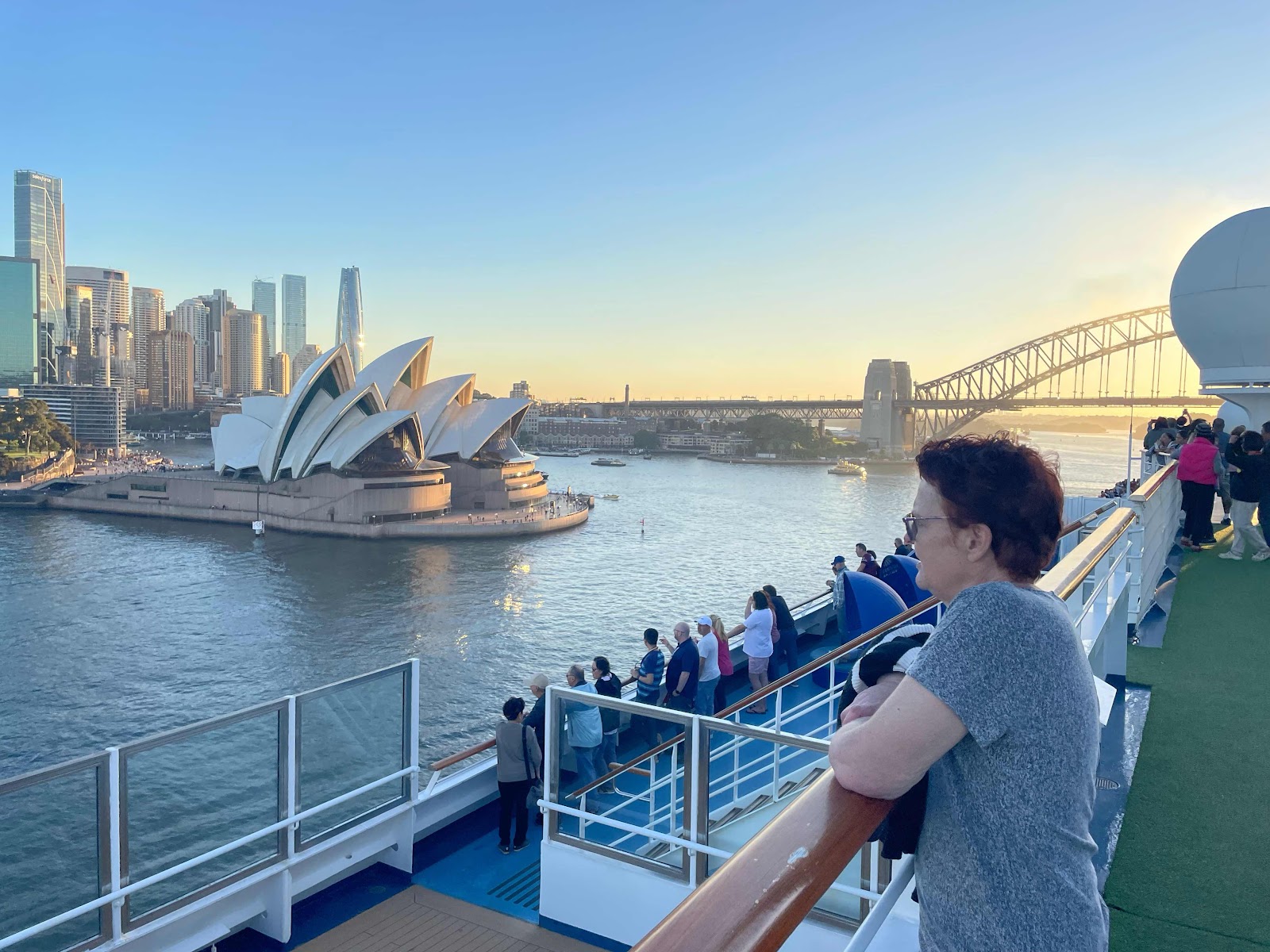 We’ve been blessed to visit quite a few ports via cruise ship, and Sydney, we agree, ranks high on most beautiful ports from which to sail. To begin with, the ship is docked right next to the Opera House, and the view of the city skyline is nice.