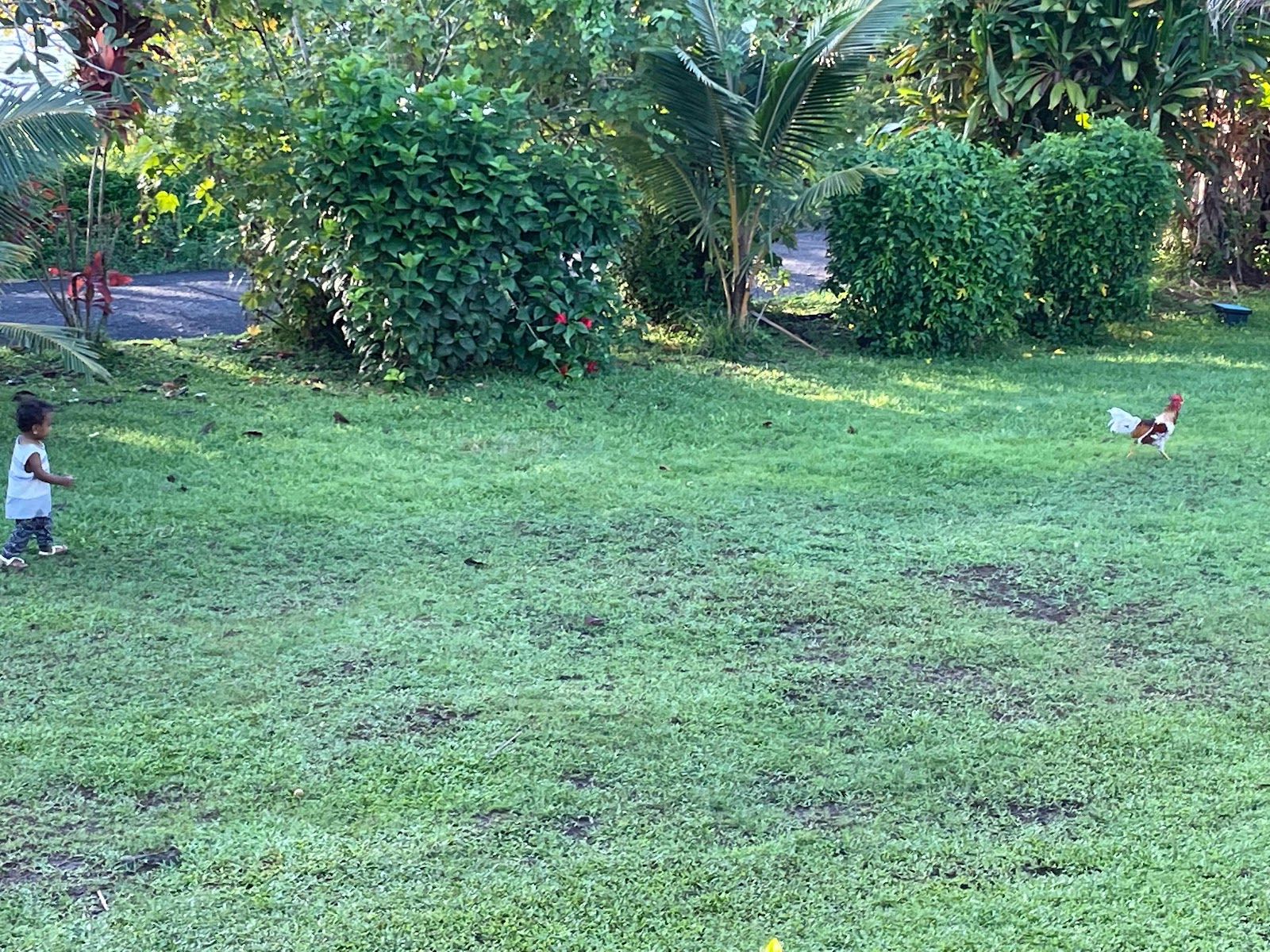 While we ate, Josh was out and about, all by himself at 2-years-old, practicing his rooster hunting skills, 😂 — he is quite adorable.