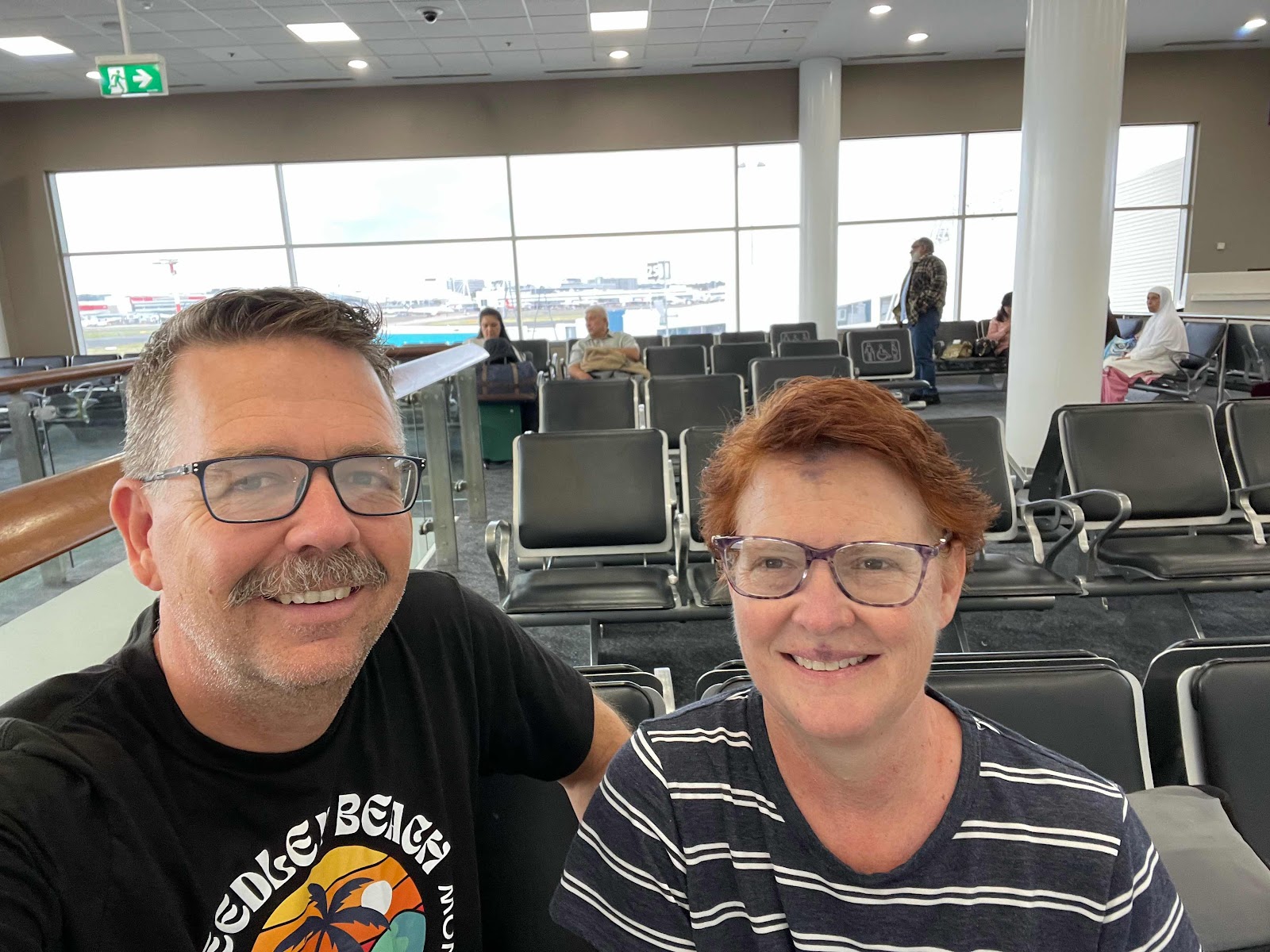 We made it to the airport and are through security. We have plenty of time. Our flight departs at 2:40PM on Saturday and, because of the time difference, we arrive in LA at 12:55PM also on Saturday … if you’re going by date and time, that’s before we left Sydney. 🤣