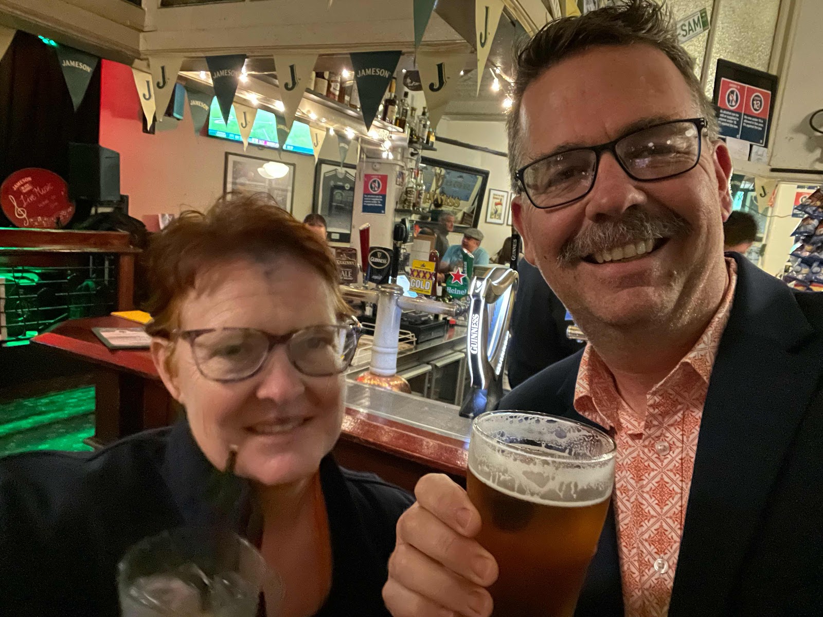 At 5:00PM we got dressed and went downstairs to have a drink. Our hotel has an Irish pub on the first floor. Very cool atmosphere; it was a real party when we returned.